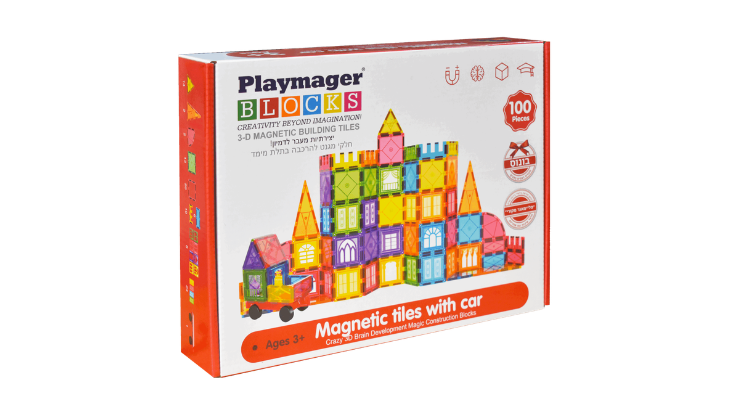 משחק מגנטים 100 חלקים PLAYMAGER – הרכבת מגנטים בתלת מימד. מפתח דמיון, יצירתיות, חשיבה מרחבית, צורות, הנדסה ועוד. אבני הבנייה ייחודיות במשיכתם המגנטית מכל הצדדים, גם כאשר מסובבים אותם. ילדים ילמדו ללא מאמץ באמצעות משחק יצירתי על צורות גאומטריות, סימטריה, ארכיטקטורה ומושגים מתמטיים. בסיסיים כגון ספירה, חיבור וחיסור באמצעות מניפולציה של חתיכות צבעוניות. המשחק מכיל 100 חלקים בצורות שונות: ריבועים, משולשים בגדלים שונים. מגיל 3+.