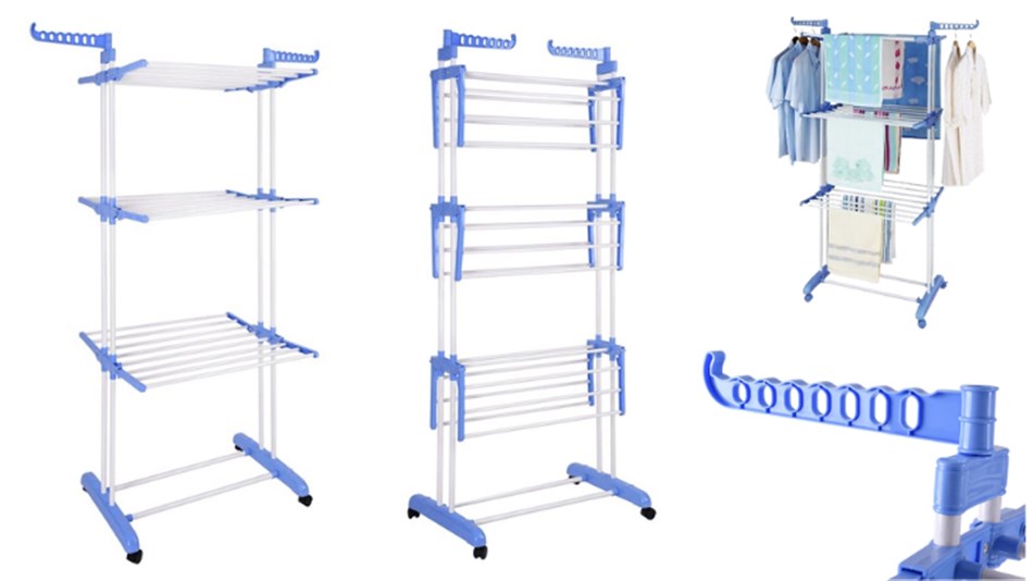 • S-FREE - מתלה כביסה 3 קומות מתקפל על גלגלים צבע תכלת - כולל משלוח