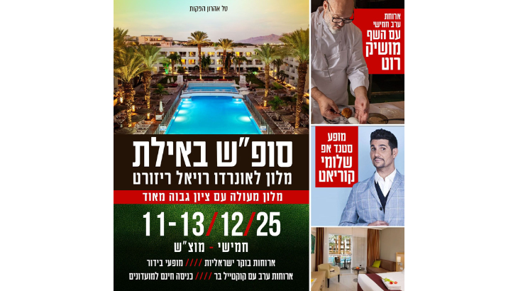 יום שבת 13/12/25 7:00-11:00 ארוחת בוקר 11:00 מוזיקה ישראלית בבריכה לשומרי השבת פינוי חדרים במוצש